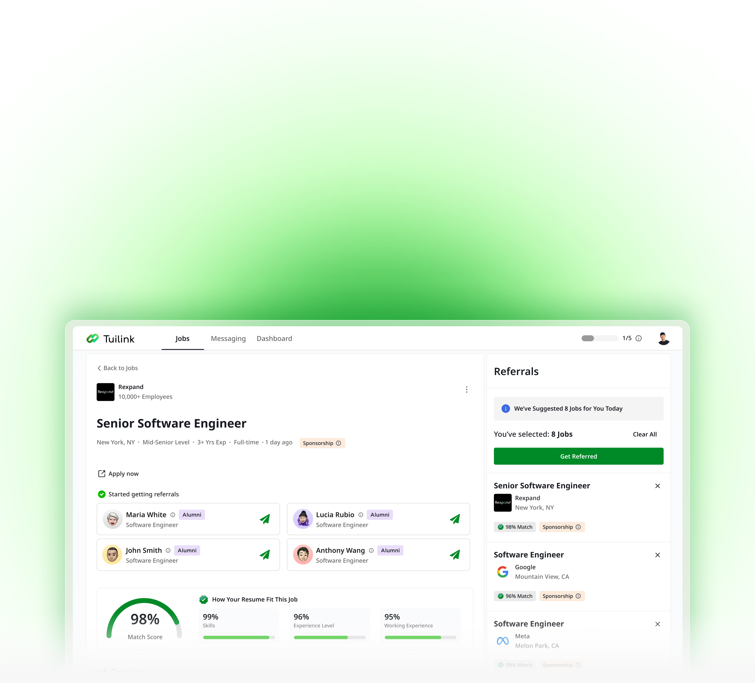 With Tuilink, over 2,000+ users have increased their chances of getting interviews by 5X and receiving offers by 2X